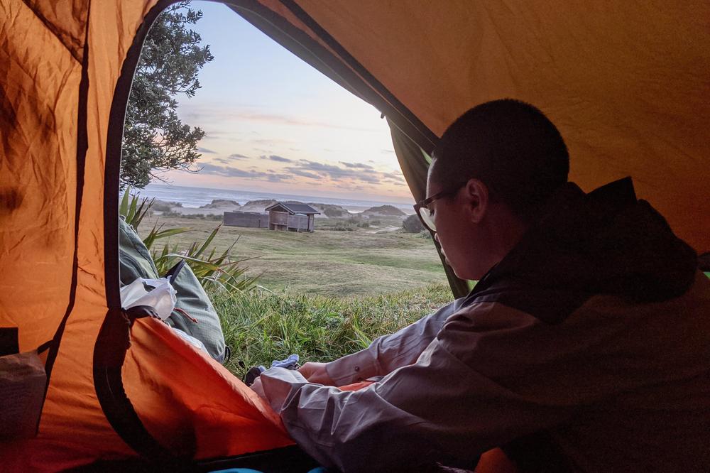 Almost no sooner had we begun walking did we meet Kath, our first Te Araroa encounter, coming the other way. Kath was section hiking the TA, and had opted to complete the beach section going northbound. Our second encounter soon followed when, arriving at Twilight, we came upon two tents. Mitch and Olaf were just stirring as we arrived – Olaf a little less enthusiastically than Mitch. Hopeful through-hikers like us, they had chucked in their jobs in Auckland and (that we know of) are the only other hikers to have started the TA on October 7th, 2020.