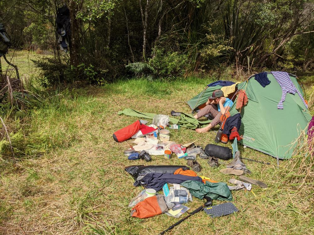 Paul was next to arrive and as he put up his tent, we fell into one of the many gear conversations that the trail would provide. His gear was universally hi-tech, lightweight, and all new for the trail. Ours by contrast was low-tech, heavy, and almost entirely second-hand. Our tents provided very similar amounts of internal space, plus his had far larger vestibules in which to shelter his gear, but where Paul’s tent weighed barely 1kg, ours was a hefty 3kg. While the prospect of dropping two kilograms from the weight of my pack was appealing, the thought of spending more than a thousand New Zealand dollars to do so was not. Besides, I dislike buying things new, there’s plenty of stuff in the world already. Regardless, talking gear with Paul was very enjoyable, we both saw the merit in each other’s approach and could speak freely about the shortcomings of our various bits of kit.